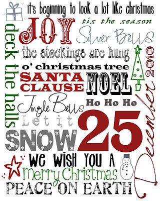 I love decorating for Christmas. I don't go all out and spend major bucks on totally amazing decorations (though I drool over them in magazines and other blogs) but I do what I can with the little budget we have. One way to instantly decorate is to print out a festive printable and frame it. I showed you awesome people some of my favorites for fall and here are my favs for this Christmas season: